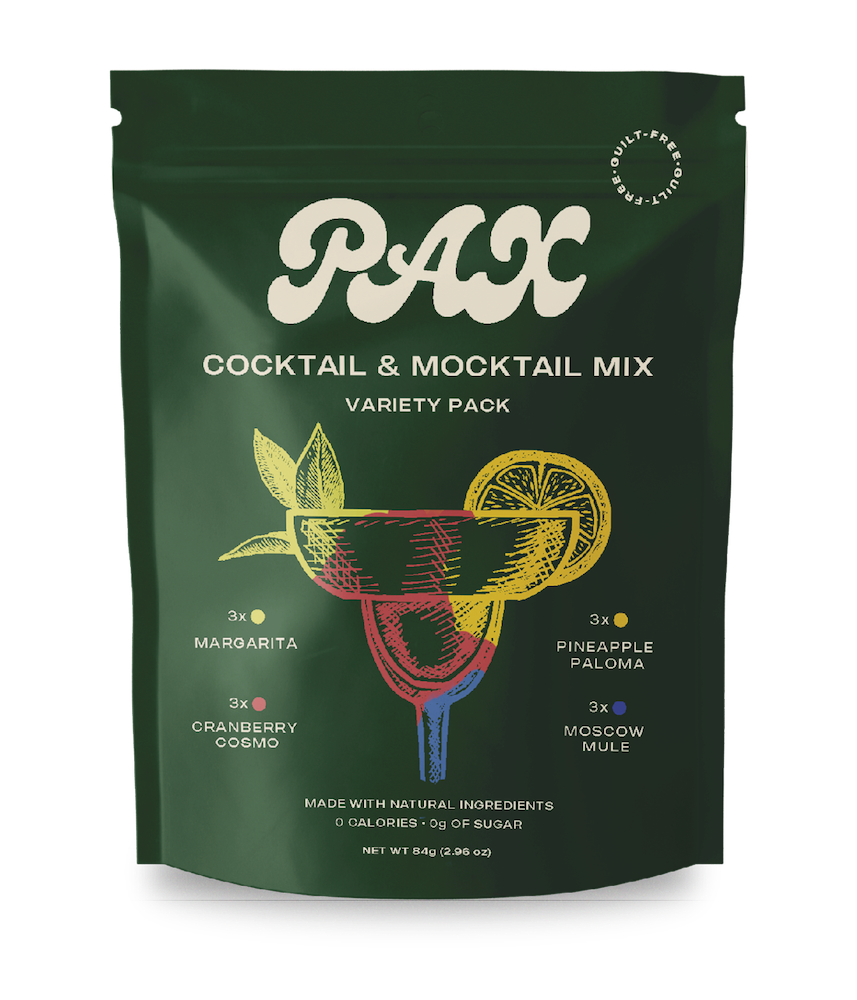 Pax is a natural dry-blend cocktail and/or mocktail mix that comes in convenient individual packets. Our better-for-you mixes have zero calories and 0g of sugar.